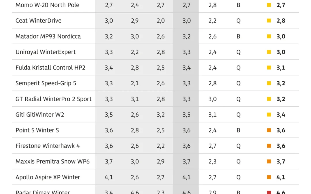 winterreifentest 2025 ergebnisstabelle